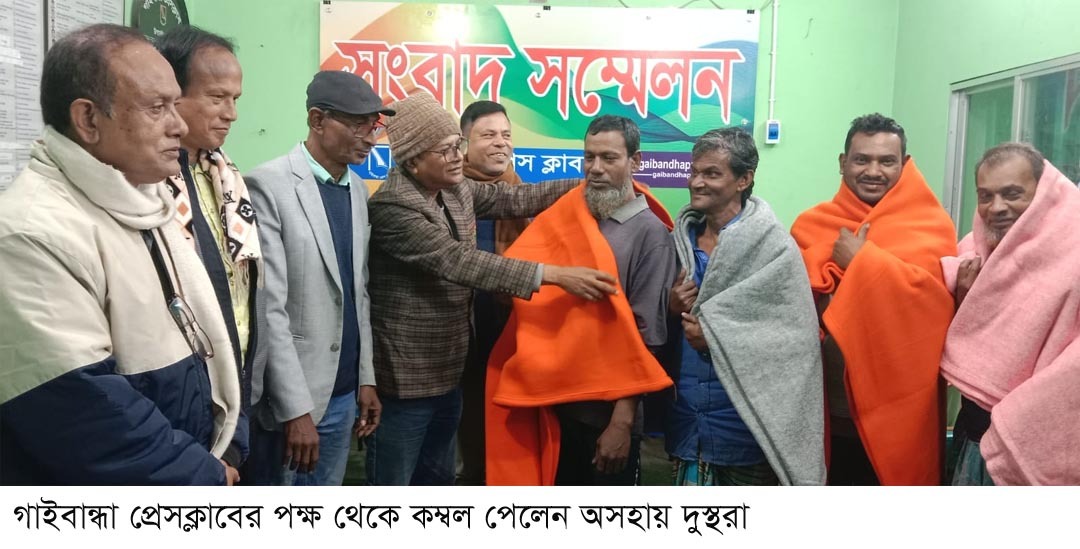 গাইবান্ধা কাচারি বাজার প্রেসক্লাবের কম্বল পেলেন অসহায় দুস্থরা