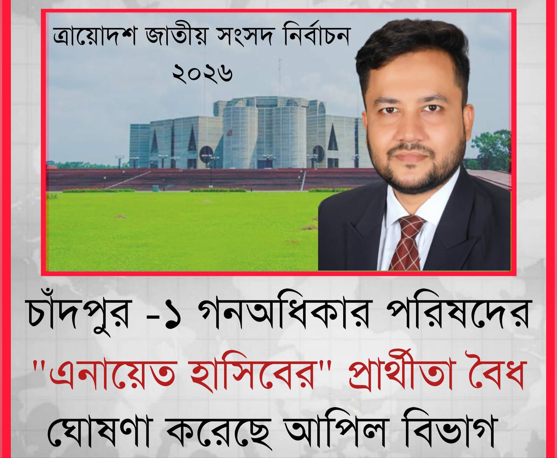 চাঁদপুর-১ আসনে প্রার্থিতা ফিরে পেলেন মো. এনায়েত হোসেন