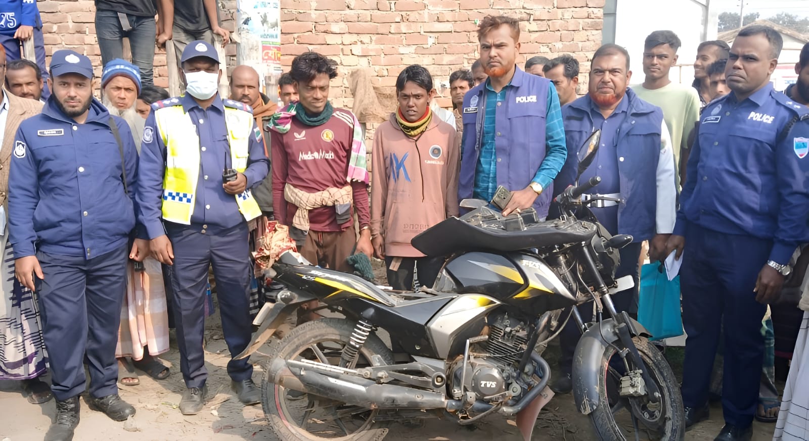 জেলা ট্রাফিক পুলিশের সার্জেন্ট হাসানুল বান্না জানান, আলমডাঙ্গা শহরে নিয়মিত চেকিংয়ের অংশ হিসেবে সকাল থেকে বিভিন্ন স্থানে তল্লাশি চালানো হয়। দুপুরে লাল ব্রিজ এলাকায় চুয়াডাঙ্গা দিক থেকে আসা একটি টিভিএস স্ট্রাইকার মোটরসাইকেল থামিয়ে তল্লাশি করা হলে তাদের আচরণ সন্দেহজনক মনে হয়।