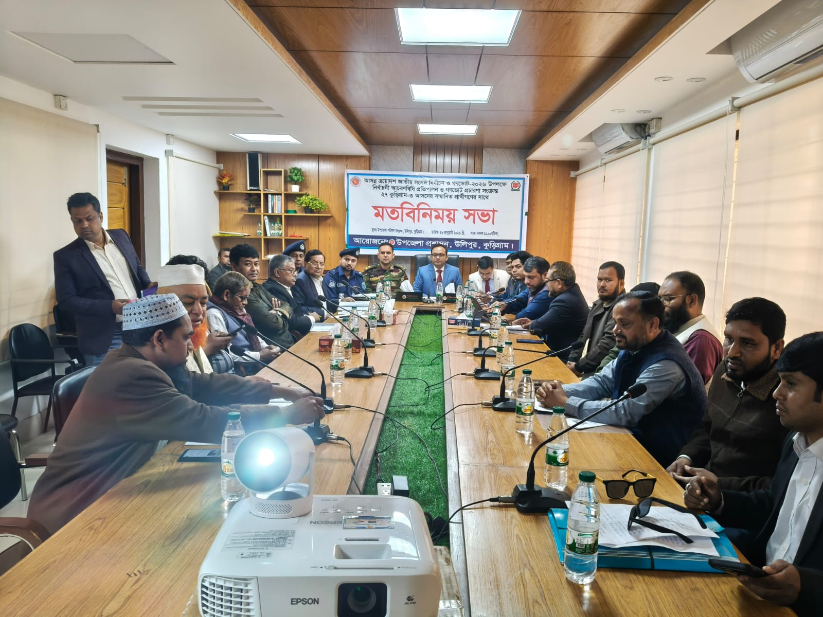 অদ্য ২৬/১/২৬ খ্রি. তারিখে উপজেলা পরিষদ হলরুমে ত্রয়োদশ জাতীয় সংসদ নির্বাচন ও গণভোট ২০২৬ উপলক্ষে নির্বাচনী আচরণবিধি ও গণভোট প্রচারণা সংক্রান্ত ২৭ কুড়িগ্রাম-৩ আসনের সম্মানিত প্রার্থীগণের সাথে মতবিনিময় সভা অনুষ্ঠিত হয়।