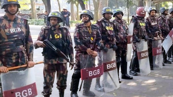 বিশেষ প্রতিনিধিঃ রাজধানীতে ৬ প্লাটুন বর্ডার গার্ড বাংলাদেশ বা বিজিবি মোতায়েন করা হয়েছে। শুক্রবার এক বার্তায় এই তথ্য জানিয়েছে বিজিবি। সংস্থাটি জানায়, রাষ্ট্রীয় ভবন যমুনার নিরাপত্তায় কাকরাইল মসজিদ ও হোটেল ইন্টারকন্টিনেন্টাল ...বিস্তারিত পড়ুন