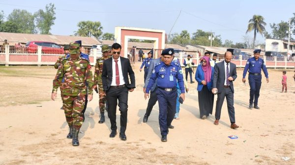 নওগাঁয় ত্রয়োদশ জাতীয় সংসদ নির্বাচন উপলক্ষে প্রশাসনের ভোটকেন্দ্র পরিদর্শন
